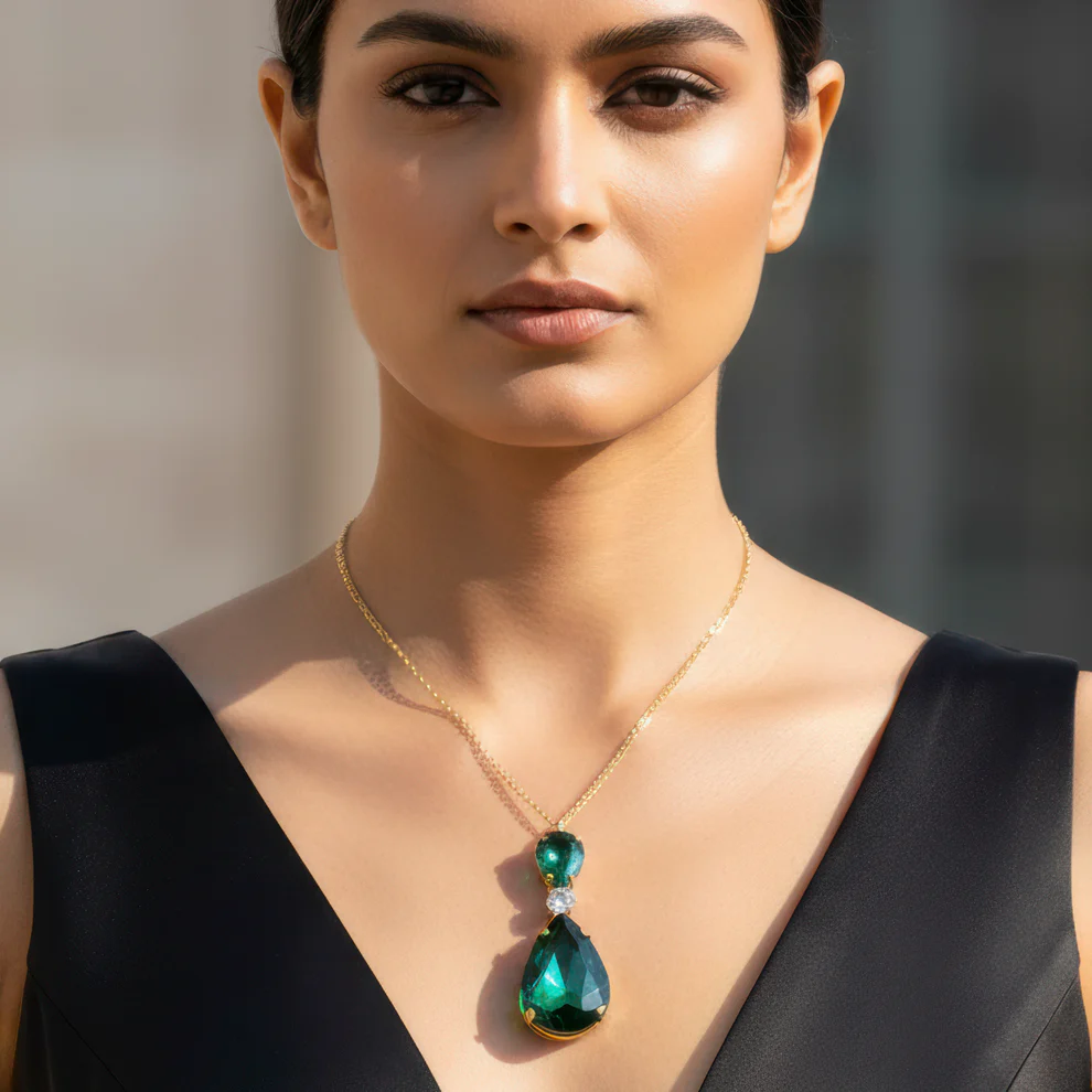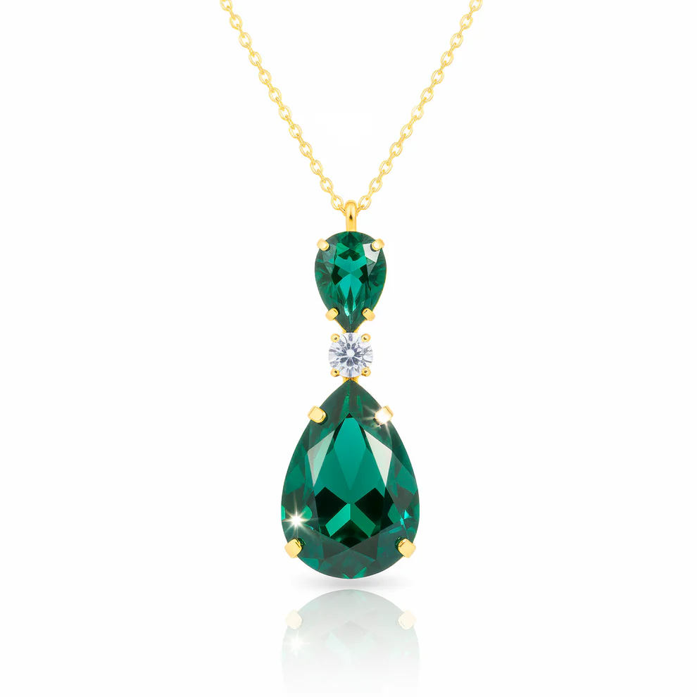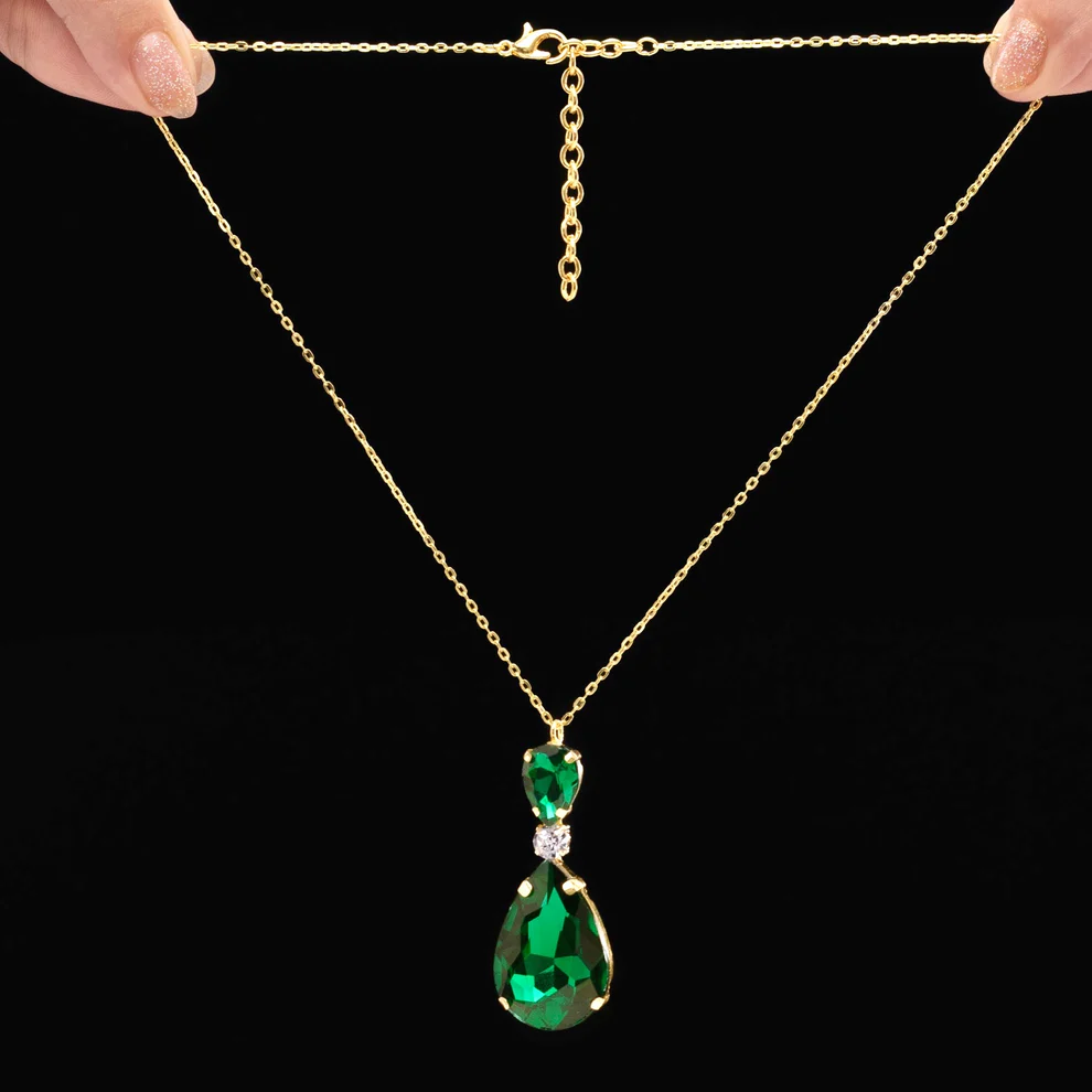 Collana con pendente a goccia in cristallo verde smeraldo anti-ossidazione