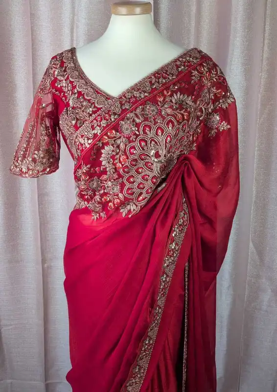 Collezione Luxury Sari – Pure Satin Seta & Ricamo Pesante, Camicetta pronta
