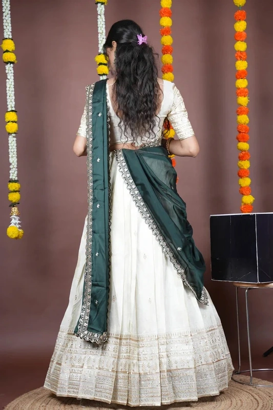 Tradizionale Half Saree in ricco Clover Pattu