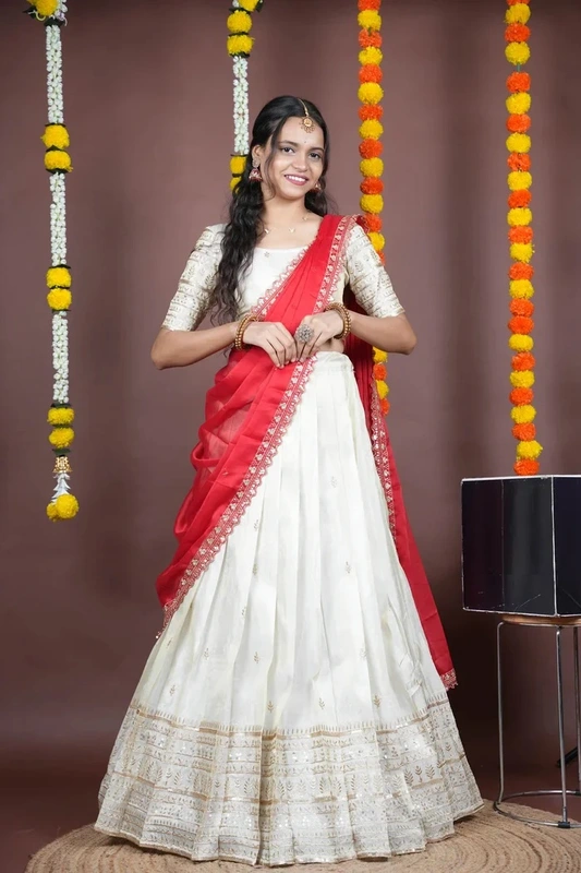 Half saree ricamato con camicetta e dupatta