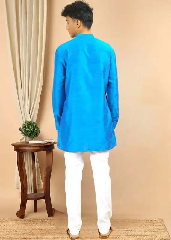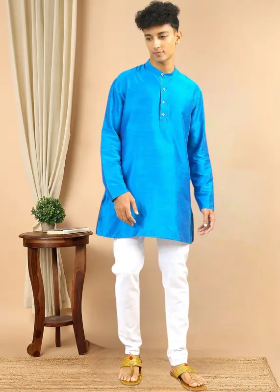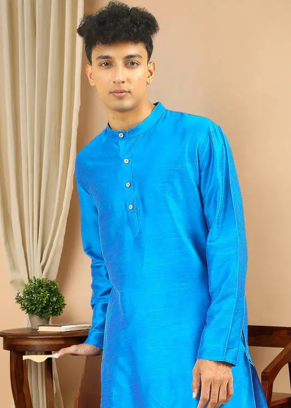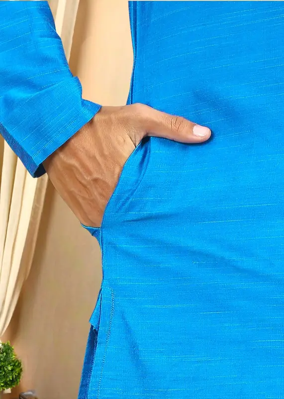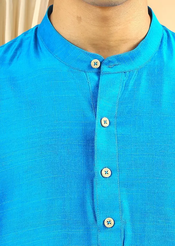 - Kurta in Premium Cotone Blend | Colore: Blu| Colletto Mandarin e Bottoni Premium | Spacchi Laterali