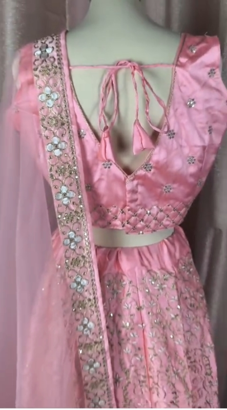 - Lehenga (gonna) : Pronta da indossare | Tessuto: seta satin malai | Interno: tessuto micro | Lavorazione: sequenza da 3 mm con ricamo Zari