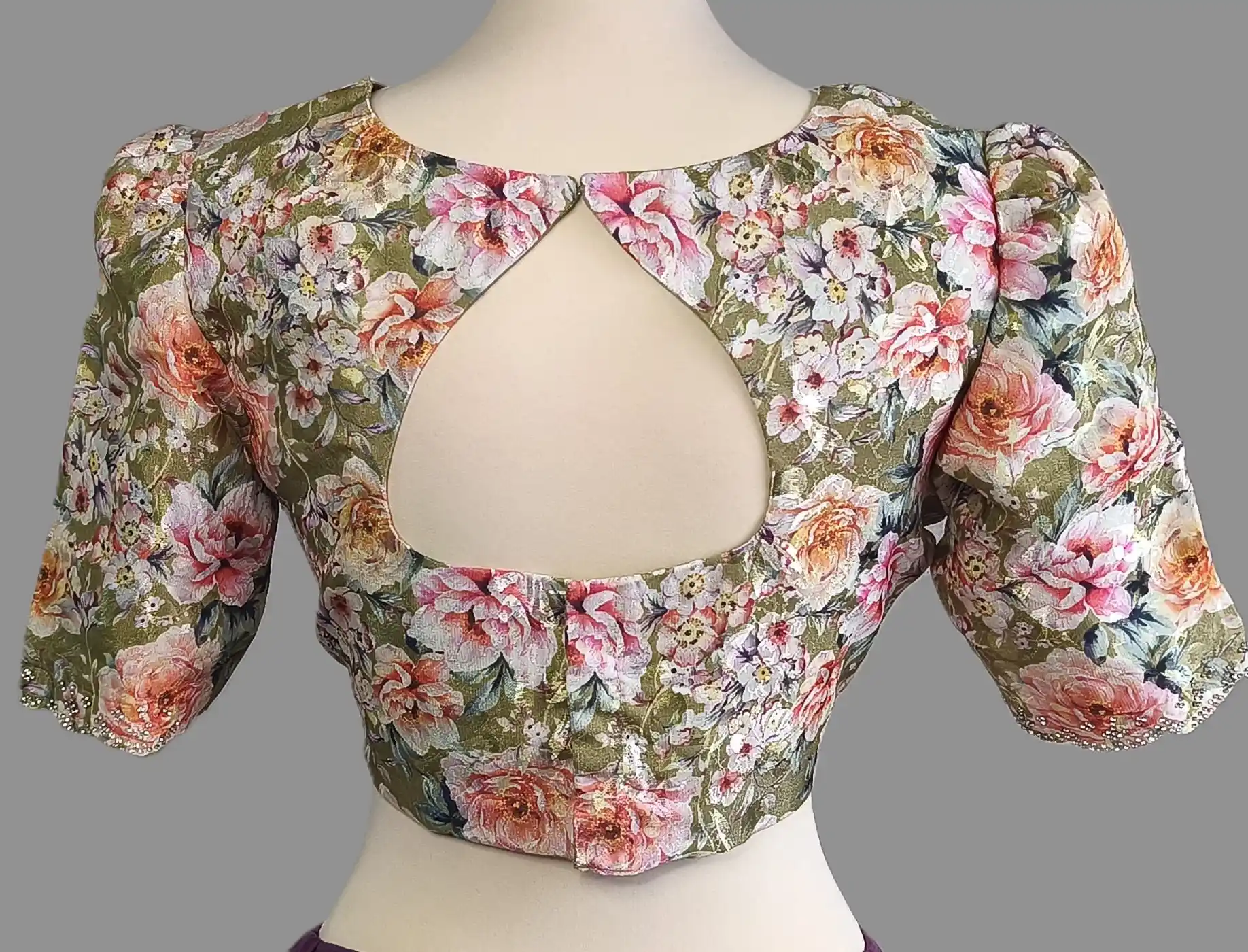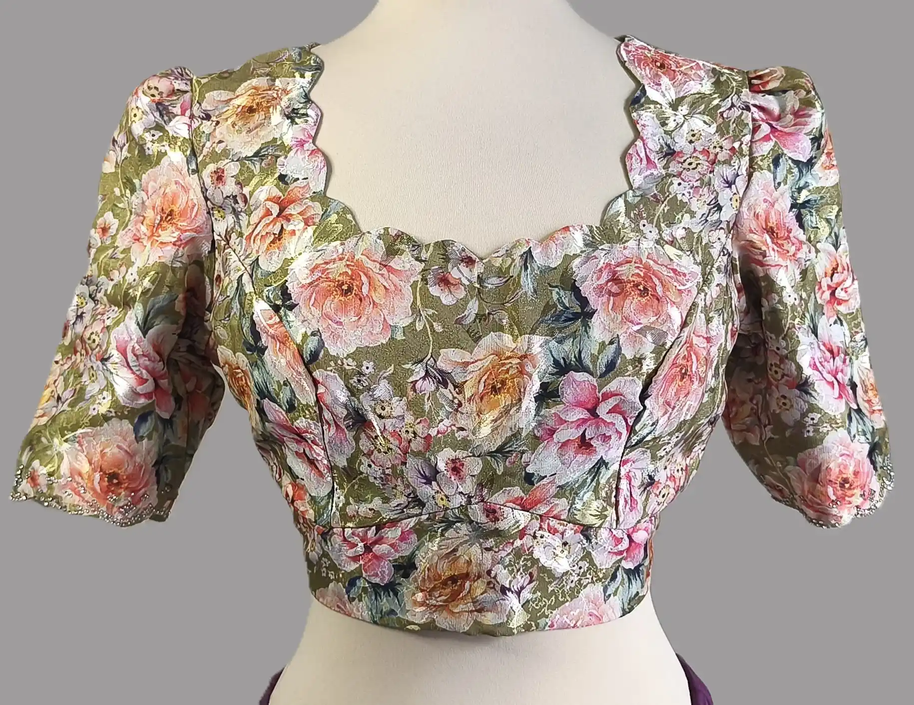 - Tessuto del sari: seta Jimmy Choo | Lunghezza del sari: 5,5 m | Lavorazione del sari: lavorazione a pietra pesante
