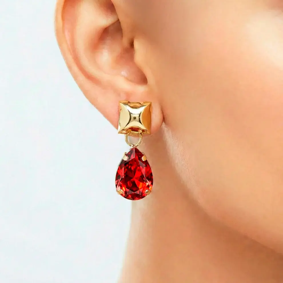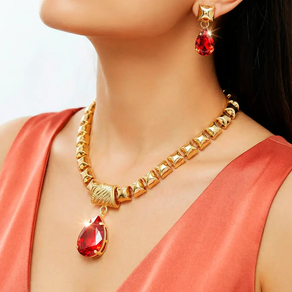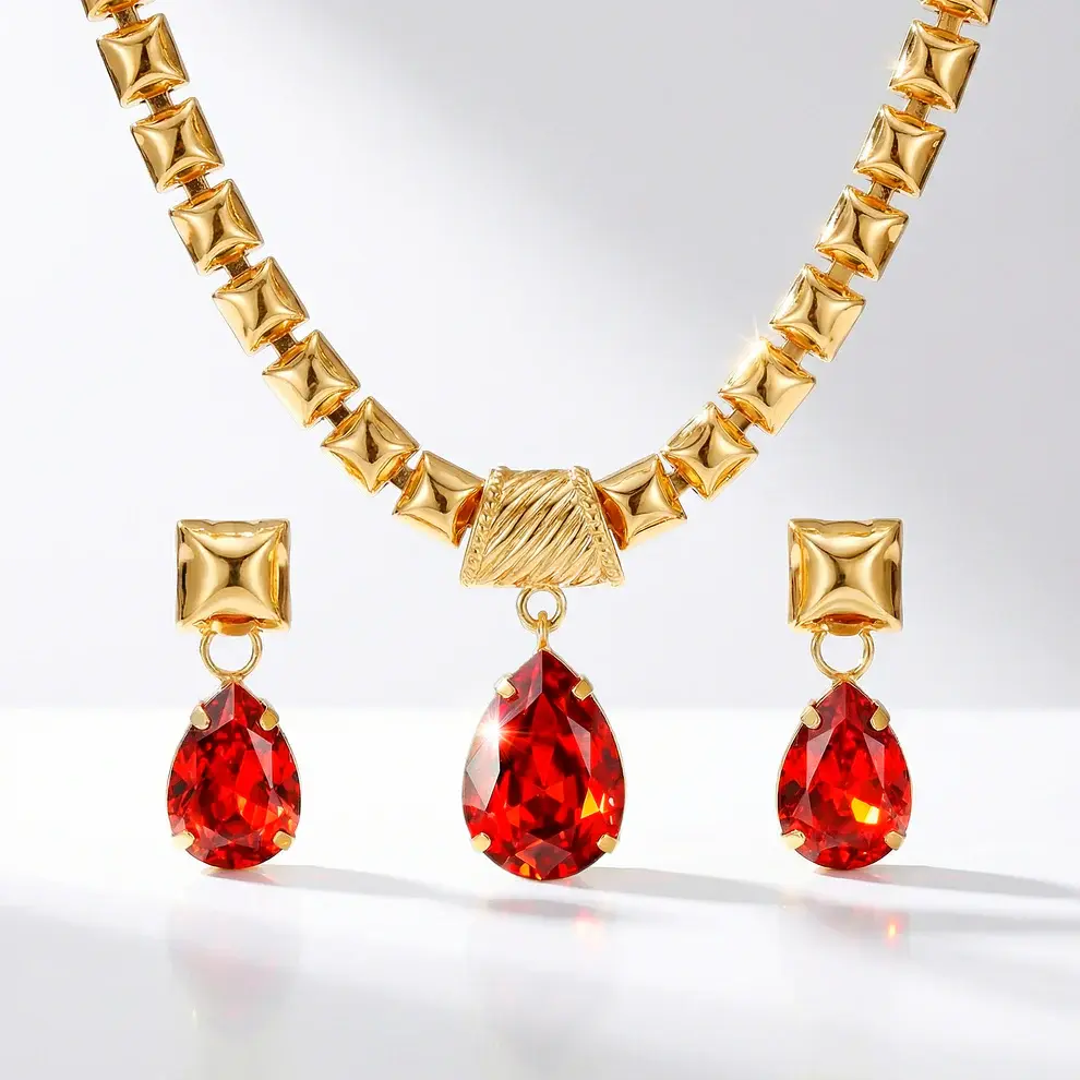 Set Collana Anti‑Ossidazione con Cristalli Rossi + Orecchini Abbinati
