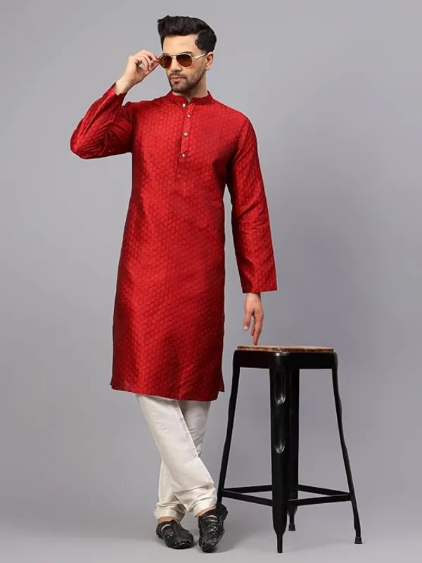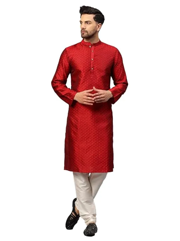 Set Kurta Pajama Uomo Elegante con Colletto Mandarin – Kurta Tradizionale Indiana con Pigiama Silk Blend