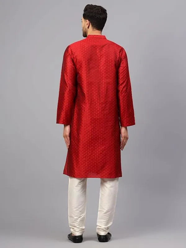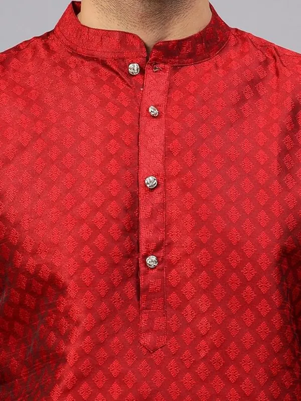 - Kurta in Premium Silk Blend | Colore: Rosso | Colletto Mandarin e Bottoni Premium | Spacchi Laterali | Pigiama Silk Blend con Coulisse