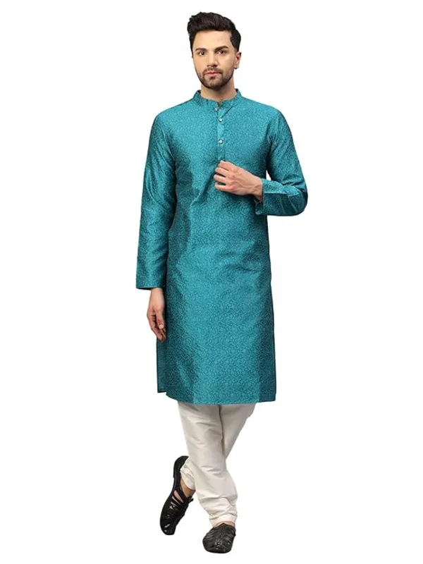 Set Kurta Pajama Uomo Elegante con Colletto Mandarin – Kurta Tradizionale Indiana con Pigiama Silk Blend