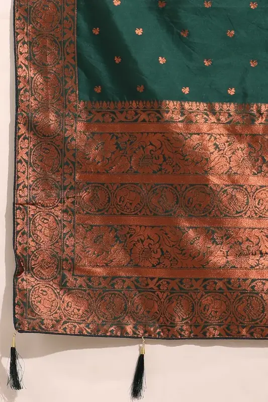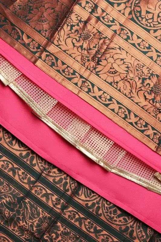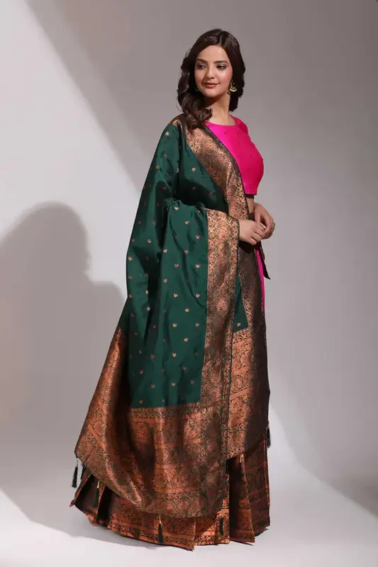 - Realizzato in raso taffetà (seta litchi) con intricata lavorazione Zari, offre un look ricco ed elegante.