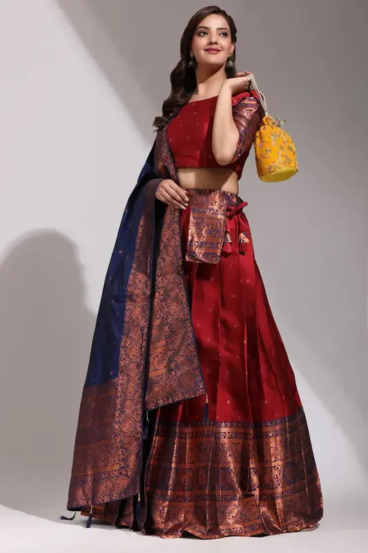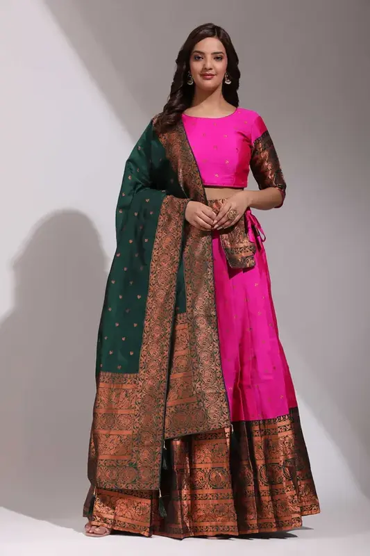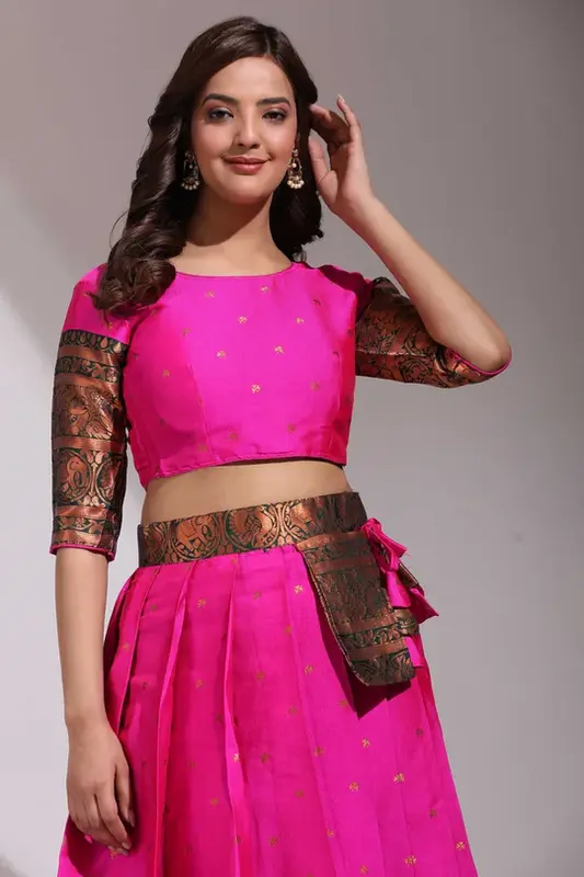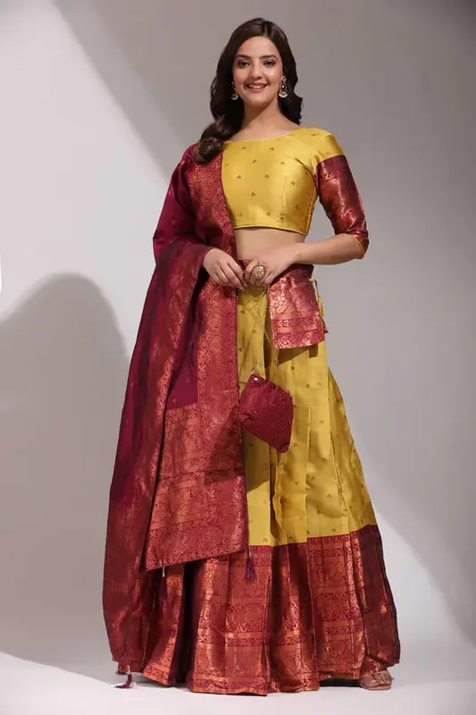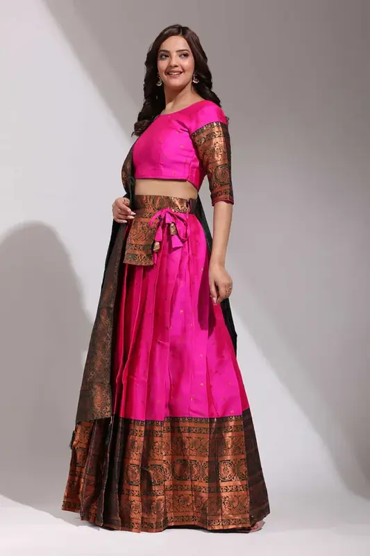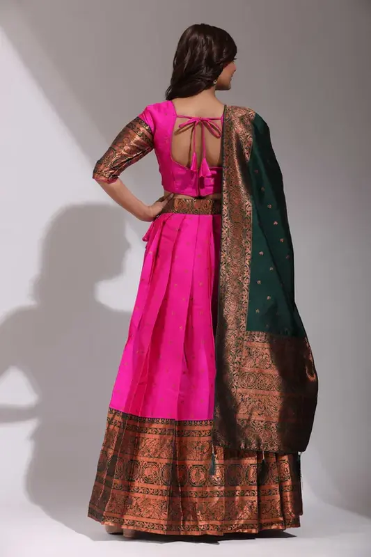 Tradizionale Half Saree in ricco Clover Pattu