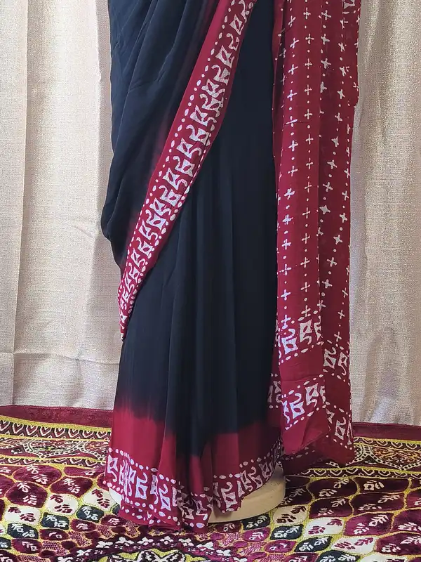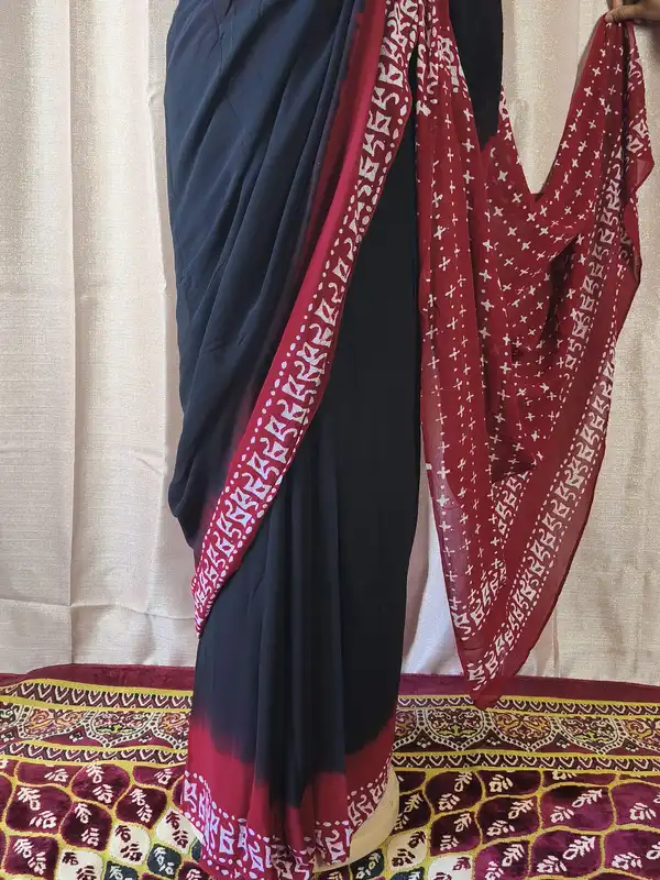 - Colore Sari: Nero | Tessuto: Georgette | Lunghezza Sari: 5,5 metri